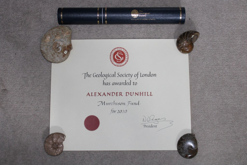 I was delighted to receive the Murchison Fund award for 2020 at the Geological Society of London virtual awards ceremony via Zoom last night. I got the certificate through the post last week and look forward to hanging it in my office once we are allowed back in the building.