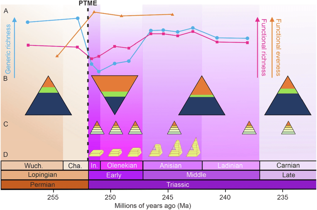 The Permian world was dominated by distinctly Palaeozoic faunas. The Triassic ushered in the foundations of modern-style marine ecosystems. From this angle, the PTME may not represent a pause before restoration — but a reset that reshaped life’s trajectory.